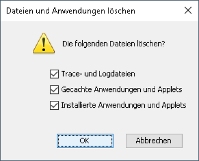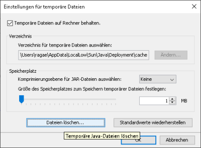 Kommt es während dem Verbindungsaufbau zu einem Fehler, ist es erforderlich die temporären Java Dateien zu löschen.