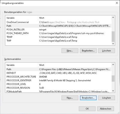 Durch den Eintrag eines Pfads in die PATH-Variable der Benutzervariablen, stehen die Dateien in dem hinzugefügten Ordner nur lokal (Benutzerweit) zur Verfügung.